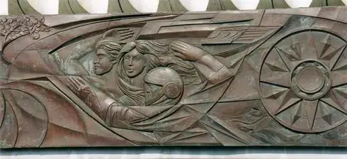 Das Kupferrelief «Der Mensch überwindet Zeit und Raum».
