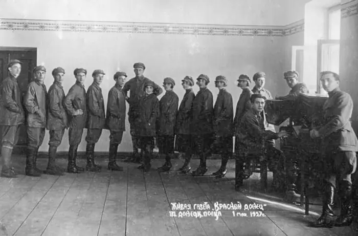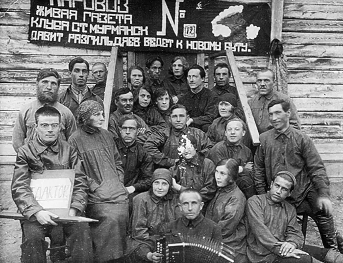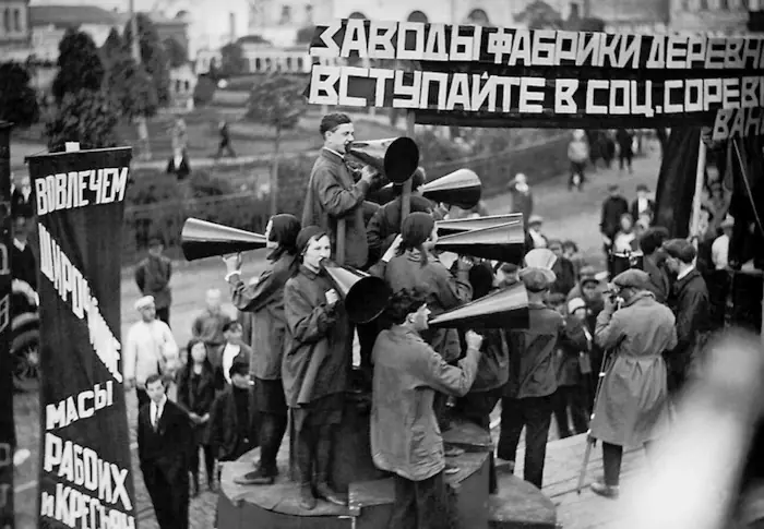 Anfangs wurden die revolutionären bolschewistischen Zeitungen einfach vor grossen Gruppen von Menschen laut vorgelesen. In der ersten sowjetischen Fachzeitschrift «Der rote Journalist» fand man viele Inhalte über die so genannten «sprechenden» Zeitungen, in denen die Redakteure Tipps austauschten und diskutierten, was funktioniert und was nicht.