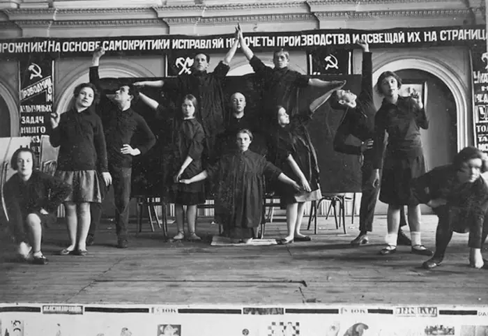 Eines der politisch aktivsten Theaterkollektive war der «Blaue Waffenrock». Es verfügte über zahlreiche Agitationsbrigaden, die mit avantgardistischen Kostümen und musikalischer Untermalung die Botschaft der revolutionären Kunst und der politischen Information in die Massen trugen.