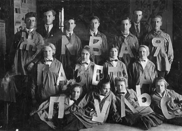 Zur Zeit der Grossen Oktoberrevolution von 1917 lag die Zahl der Russen, die lesen und schreiben konnten, bei 20 Prozent. Eines der Hauptziele der Bolschewiki war die Ausrottung des Analphabetismus, an der sie ab 1919 intensiv arbeiteten. Doch um den Menschen das Lesen beizubringen, brauchte es Zeit – für die Information mussten kurzfristig andere Lösungen gefunden werden. Denn die Analphabeten – die Arbeiter, Bauern und Soldaten – waren die Hauptzielgruppe der Agitation. Aber es gab noch ein weiteres Problem in jenen Anfangsjahren: Es herrschte ein akuter Mangel an Druckressourcen. So kam es zu der genialen Idee der «sprechenden» Zeitung.